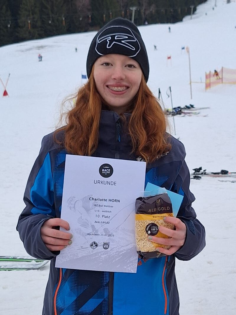 Das Rennteam der SBZ Bad Waldsee war am 25. Januar gleich an 2 Rennen beteiligt. Charlotte Horn zeigte beim LEKI-Cup in Riefensberg, dass Sie in einem engen Feld voll dabei ist und fuhr einen starken 10. Gesamtrang ein. Ihr intensives Training zeigt sich in einer immer stabileren Fahrweise, sodass Sie auch mit schwierigen Bedingungen klar kommt.